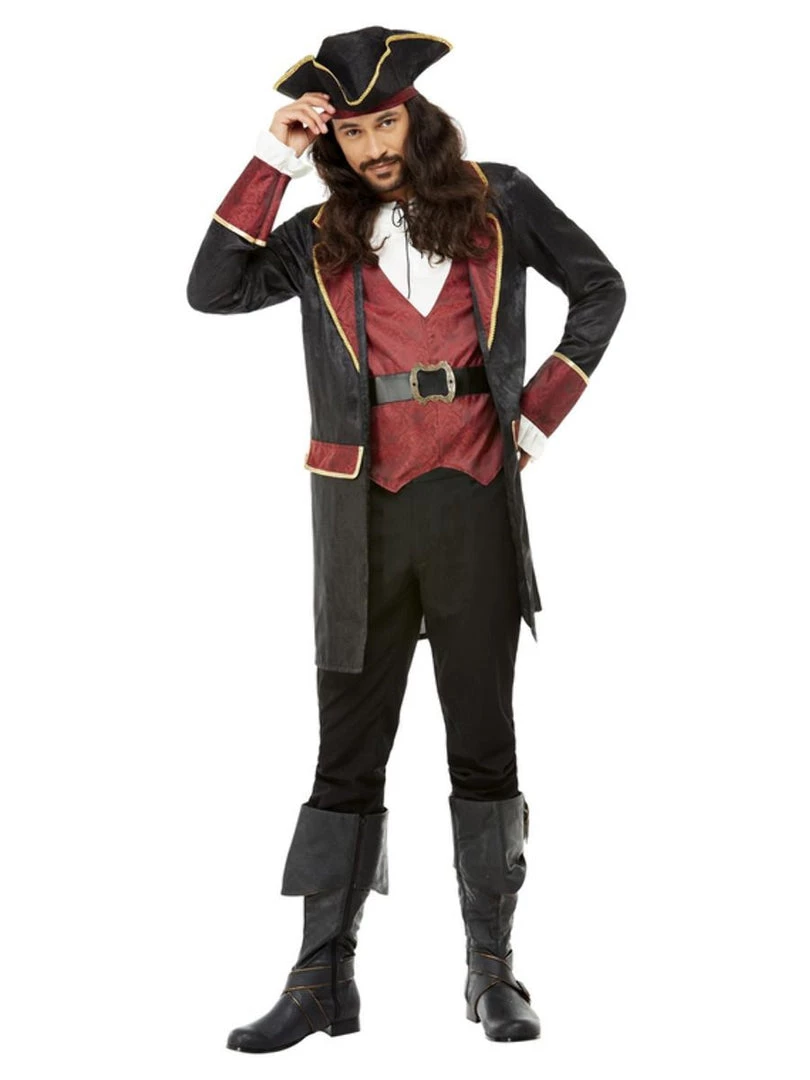 Swagger your way abord the Black Pearl with this deluxe pirate costume! Including a Jacket, Mock Waistcoat, Shirt & Hat, this costume is the complete look for your next pirate party.