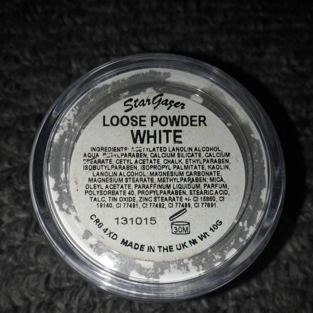 A Chalk white loose powder that is perfect for Gothic makeup, Halloween makeup or just to lighten the face colour. The sifter allows for simple application with this light powder.