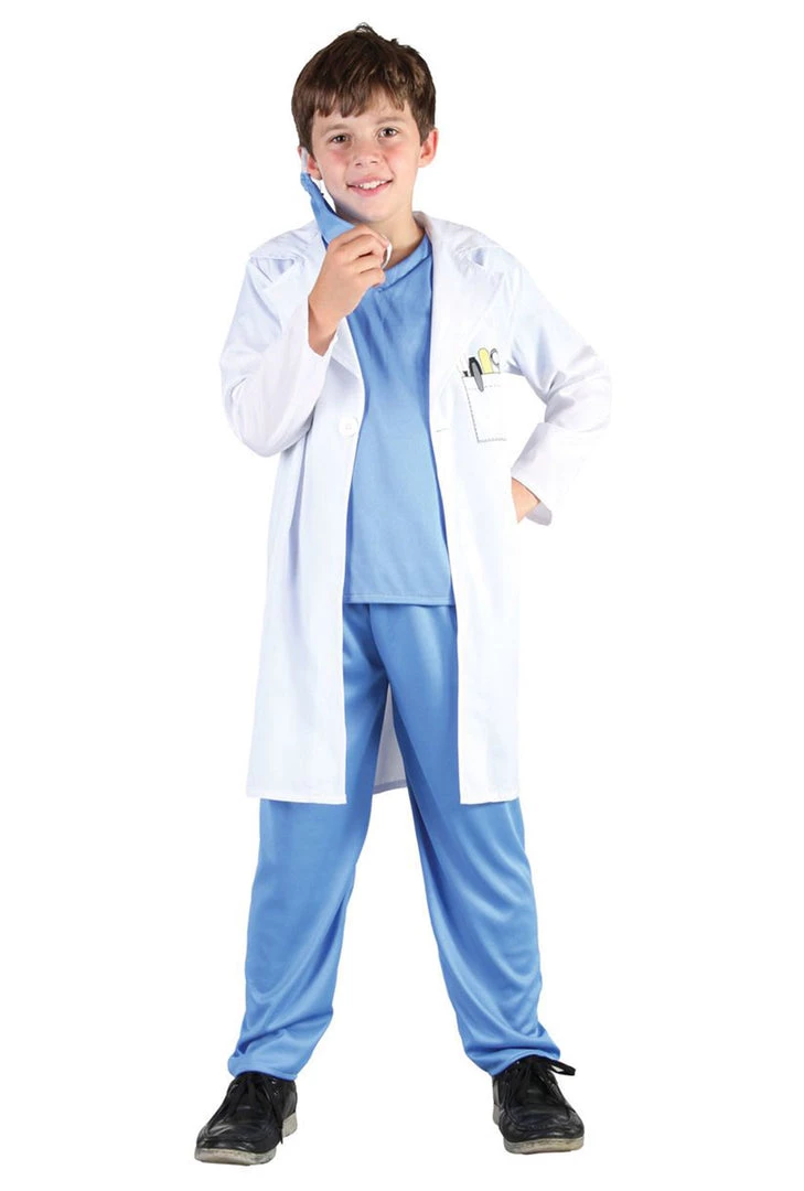 Careers Day at School? This super cute doctors scrubs and lab coat is the perfect Career day dress-up costume. The Kids Doctor Costume includes Blue Pants, Shirt, a White Lab Coat with a Printed Pocket.