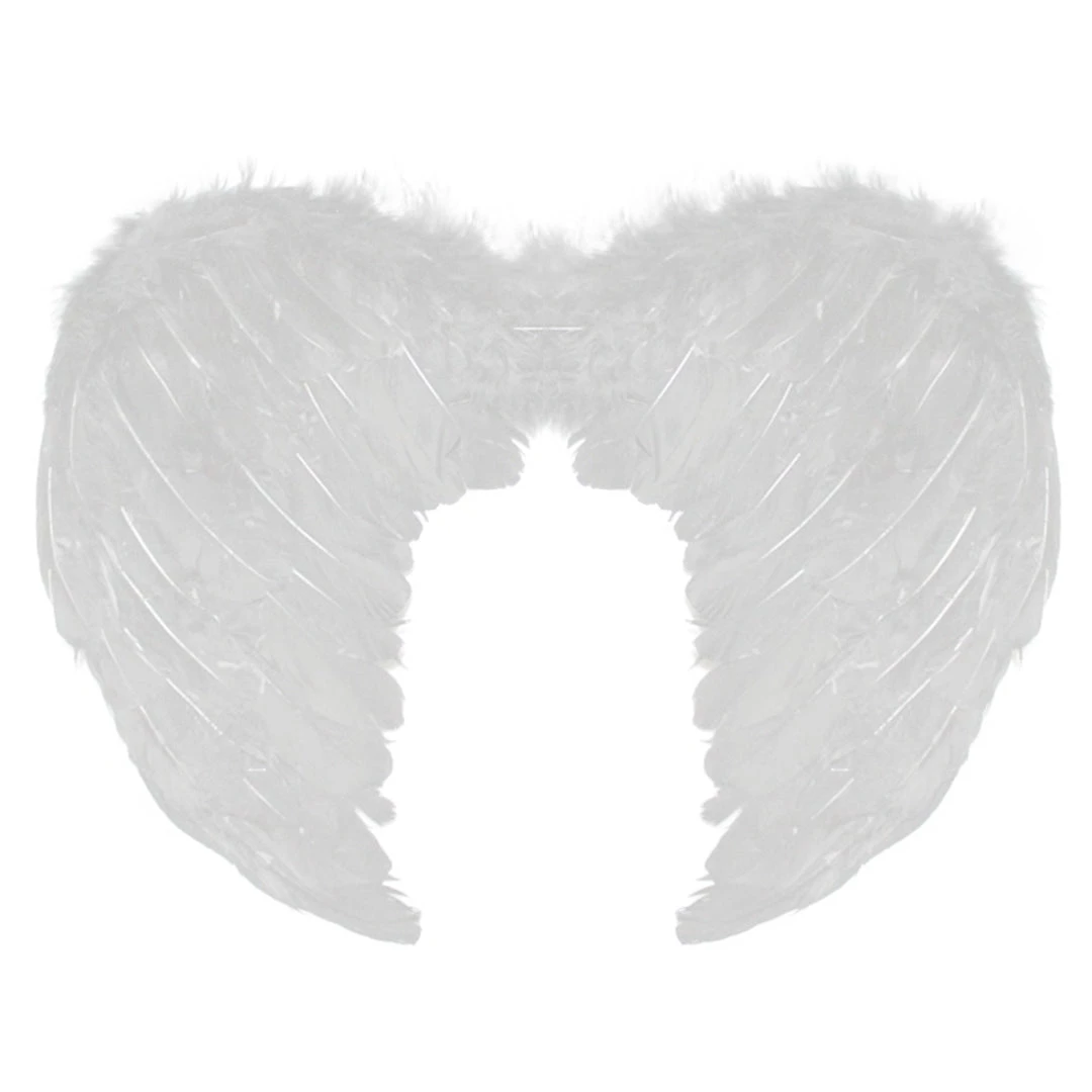 Tiny White Angel feather wings with elastic straps. 45 x 34cm. Bendable.