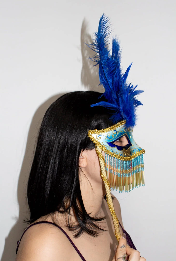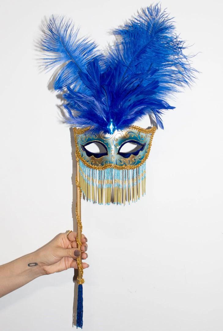 Sweidas Masks & Eyemasks Blue Tassel Masquerade Mask On Stick