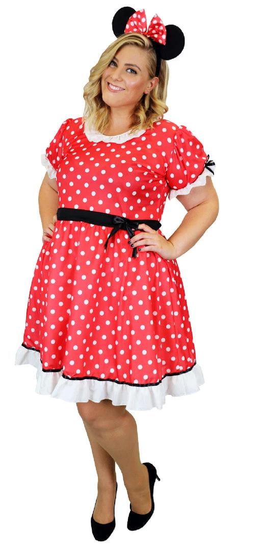 Mouse Lady. Be part of the mickey mouse club with this Minnie Mouse costume perfect for any event or party. Includes Mouse Ears, White Gloves and Dress.