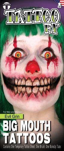 This kit combines our temporary tattoo Big Mouth Tattoo FX with our new line of FX Makeup. Everything in this kit was designed for easy application with maximum results in character creation.