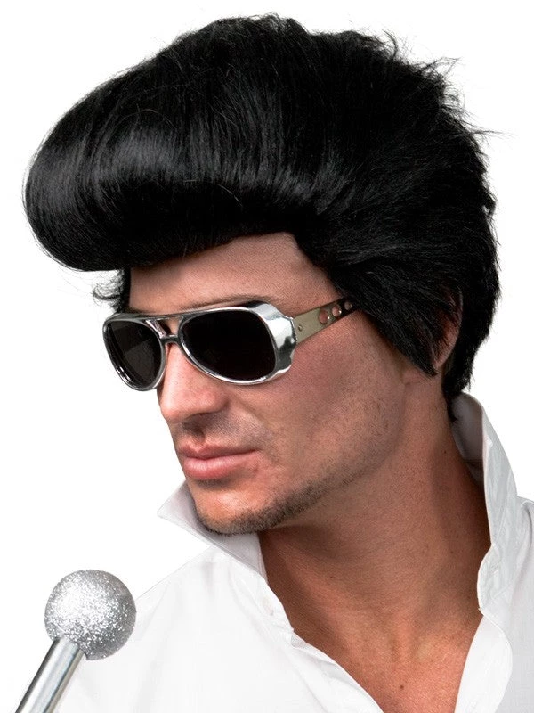 Black 1950’s styled wig. Perfect for your next Elvis costume!