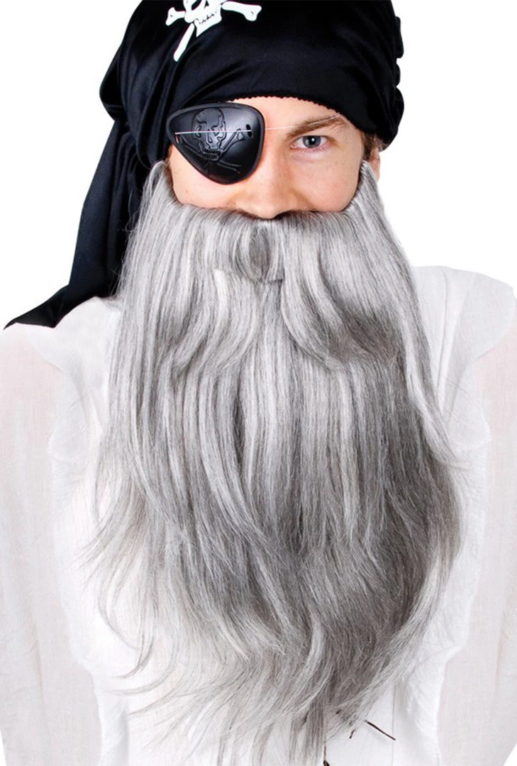 Show the world that you’ve been out at sea for months drinking rum and collecting treasure with this long beard with attached moustache. Comes in black, grey and red! Elastic band holds it on.