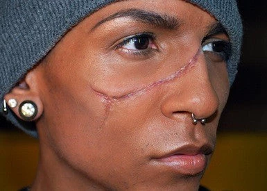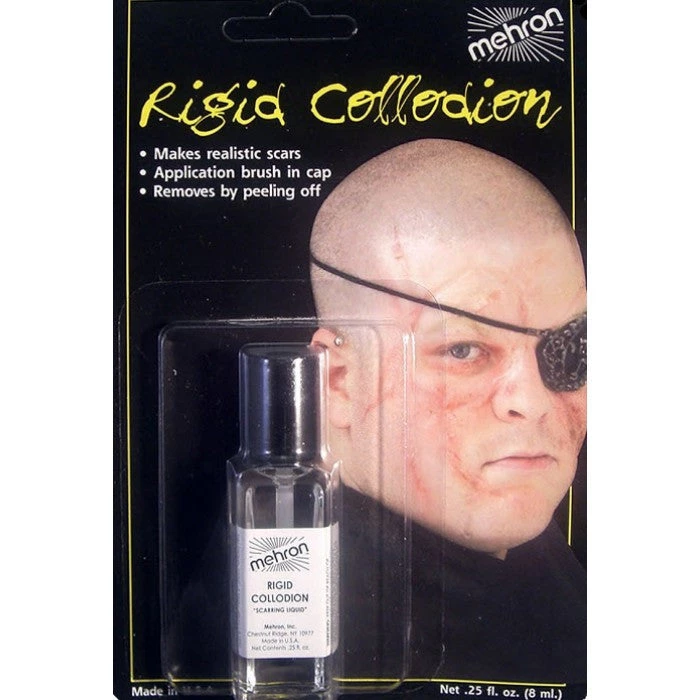 This Scarring Liquid is a clear solution created for Special Effects Makeup work to create the effects of scarred skin. Paint a small area of pliable skin with the brush provided and allow to dry. Repeat to heighten effect. Team the scarring liquid with our Tri-Colour makeup Palette to give the appearance of being swollen or inflamed. To remove simply peel from skin.