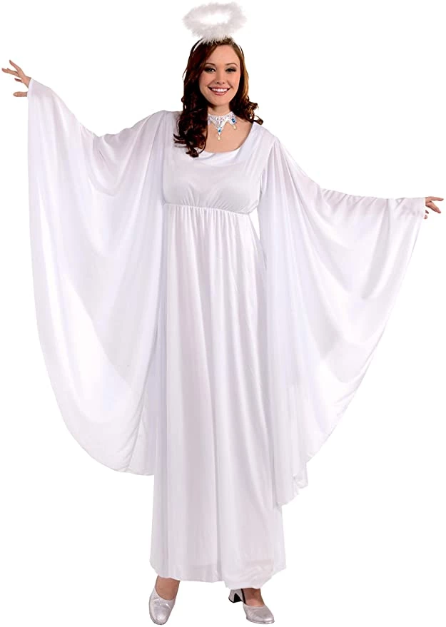 You’ll look just heavenly in this costume! Includes White Long Butterfly-Sleeve Dress and a White Fluffy Halo on a headband. AU XL.