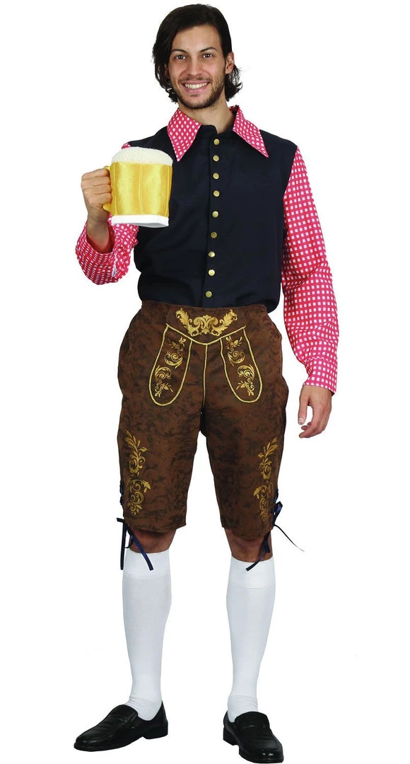 Get ready for a mouth-watering traditional pretzel and tasty German beers when you attend Oktoberfest wearing this men’s Bavarian beer man costume! This affordable men’s lederhosen costume will be an excellent fancy dress to wear for a German themed celebration!