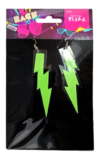 Trademart Jewellery Green Glitter Neon Lightning Bolt Earrings