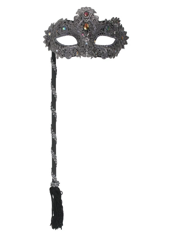 Absolutely stunning silver mask on attached matching stick. Don’t ruin your make up or hair!