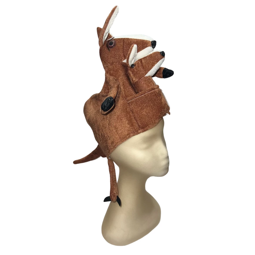 Brown plush kangaroo hat, perfect for a summer barbeque or Australian themed party!