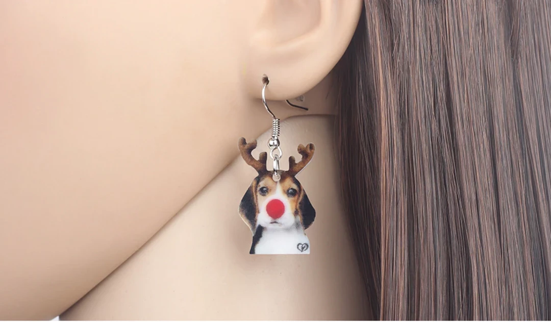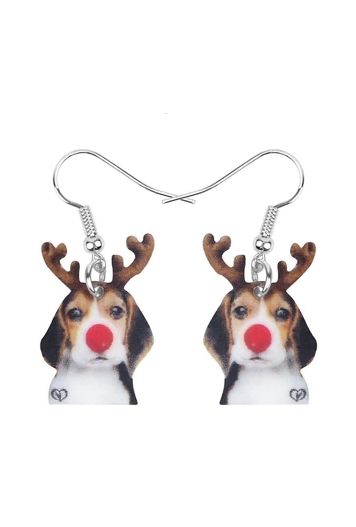 The super adorable Dog with Reindeer headband and Red Nose Earrings are Perfect to wear fur’ Christmas!